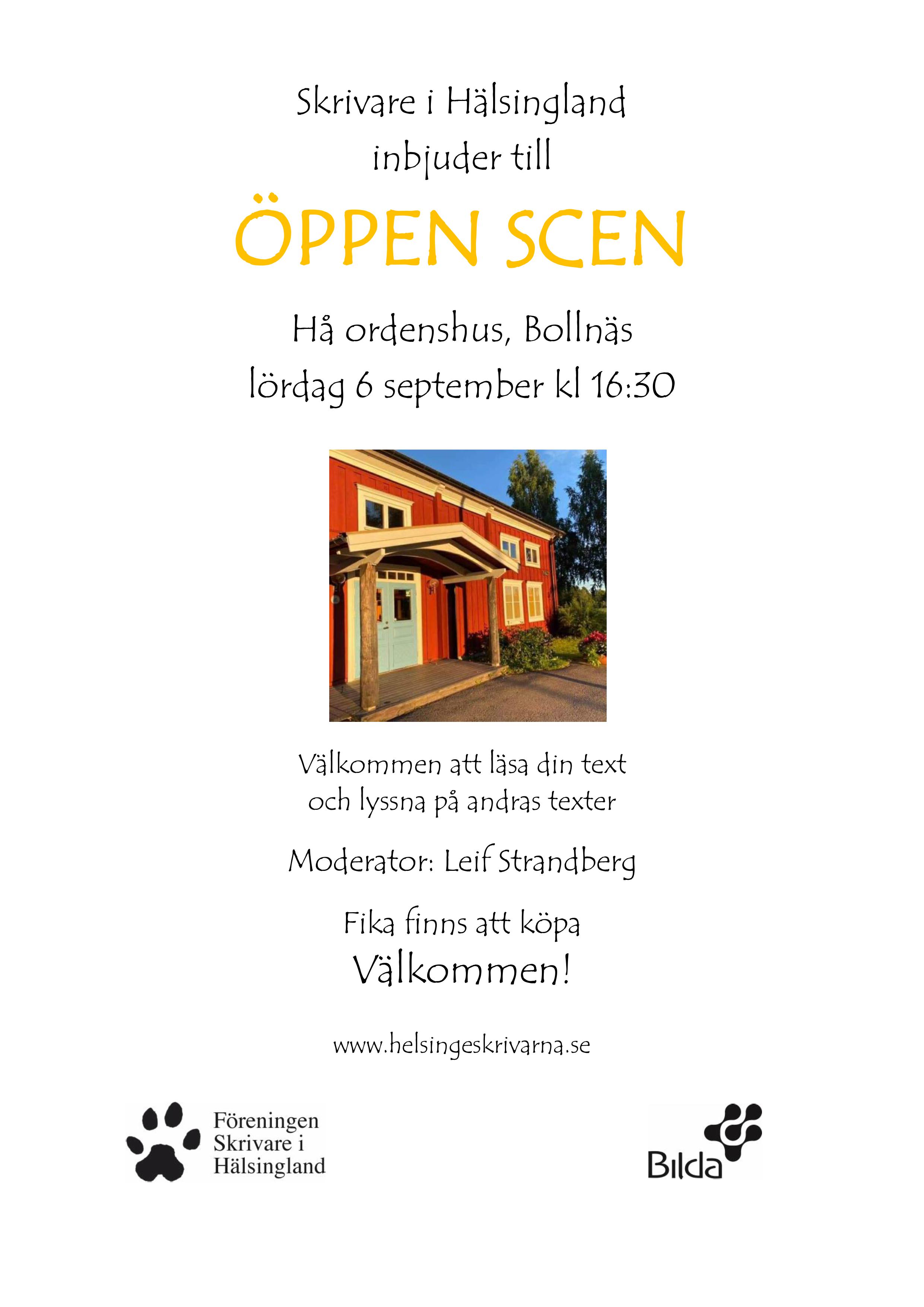 Öppen scen Hå ordenshus lördag 6 september kl 16.30